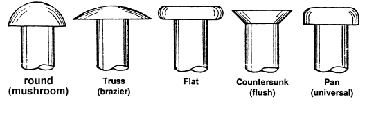 Rivets are typically categorized by head shape, degree of hollowness, or material.
