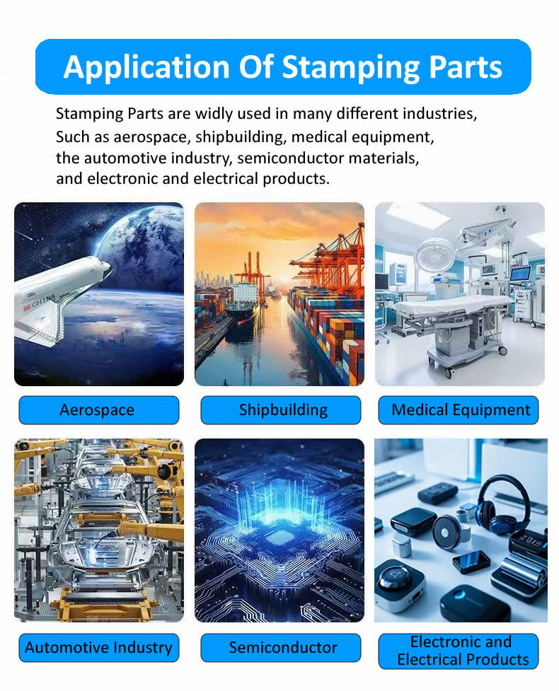 Eksempler på stempling af små dele omfatter stikben, fjederkontakter, skjolddæksler, batteriterminaler, urforbindelser, sensorbeslag og kirurgiske instrumentspidser.