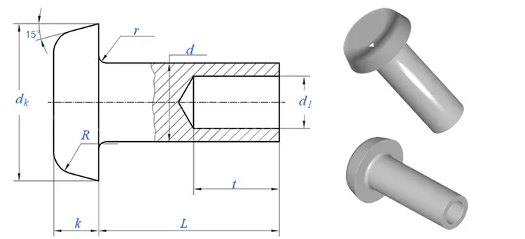 Universal Head Semi-tubular nitter findes ofte i bil-, elektronik- og byggebrancher samt i skiltning, sejlsport og køling. Keglehovedet giver en lavprofileret, æstetisk tiltalende finish, hvilket gør dem velegnede til synlige dele.